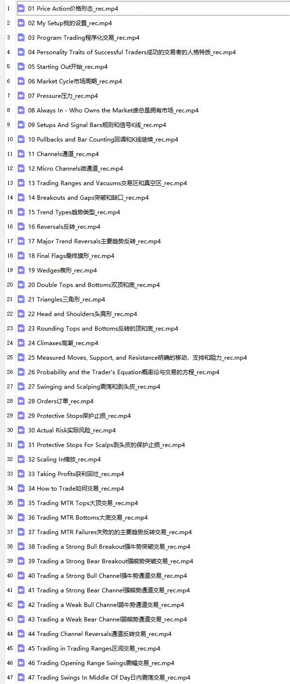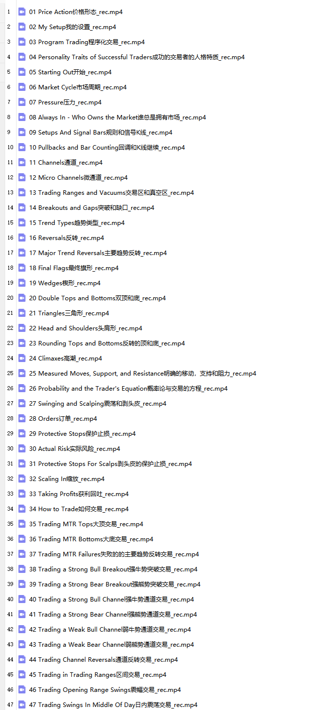 • Al-Brooks阿布价格行为公开课程英文原版和pa裸K翻译中文版53节视频课程