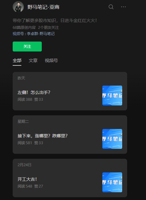 公众号野马笔记知名财经博主,其创立的“野马笔记”是广受推崇,野马笔记创始人超短情绪周期独创战法,2025年带粉丝捕捉12只翻倍股,单月最高收益68%!